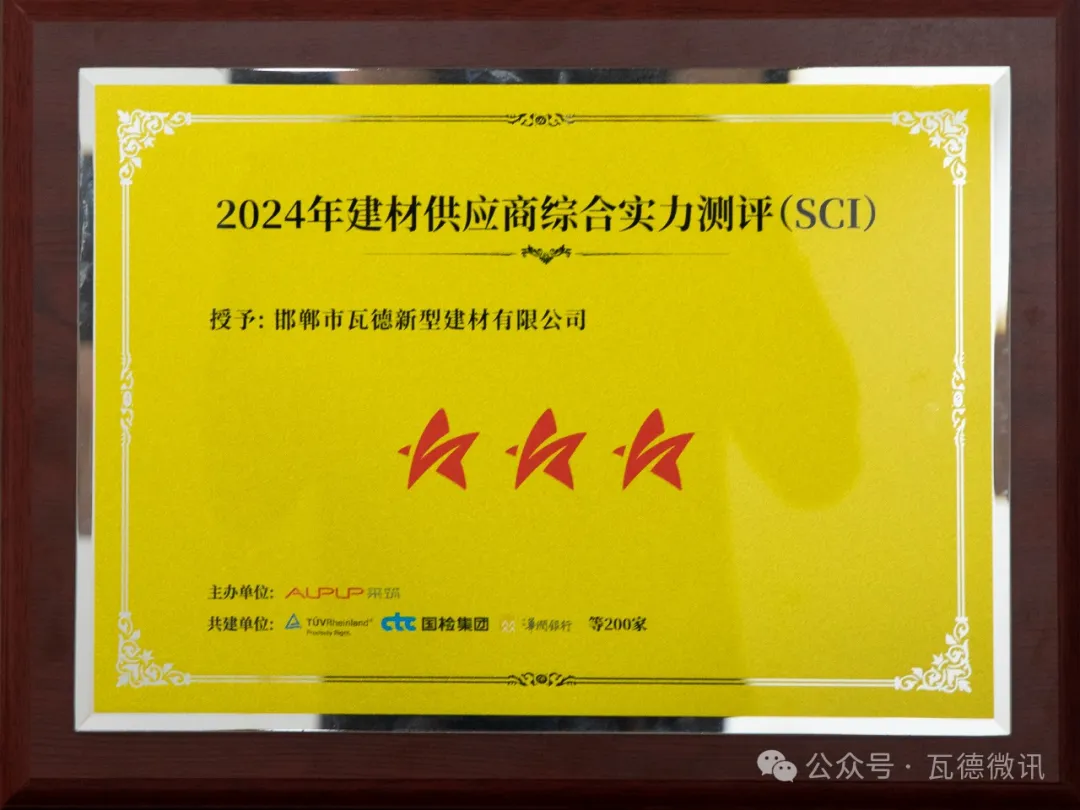 2024年4月8日,“5光同行 聚星闪烁”采筑联合者大会在重庆顺利召开,现场重磅发布2024年供应商综合指数SCI测评结果,获全场数百位政府单位、采购商、供应商、行业协会、领域专家等点赞认可。 瓦德新材在本次SCI综合测评中获评“三星供应商”。本次SCI测评共有2600余家参评单位,其中仅197家