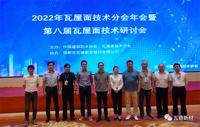 7月27日,由瓦德新材协办,作为2022第三届防水行业大会平行论坛的2022年第八届瓦屋面技术与市场研讨会,在南京白金汉爵大酒店召开。瓦德新材董事长谢富强带队参加。